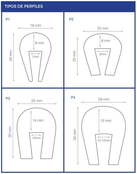 Perfilería de goma para apoyo de criba goma 60±65 shor en rollos de 25 ó 50 metros con