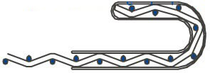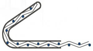 Reforzado con fleje de acero de 1.5 mm de espesor y plegado en ángulo aprox. 35° para alambres de 1.0 a 8.0 mm de diametro