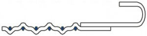Reforzado con fleje de acero de 6 mm de espesor y plegado en ángulo aprox. 180° para alambres de 9.0 a 19.0 mm de diametro.