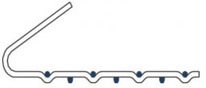 Borde especial para malla fina reforzado con fleje de acero de 1.2 mm de espesor y plegado en un ángulo aprox. 35°